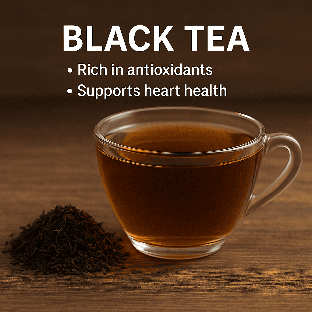 Why it helps: When green tea leaves are fully oxidised they become black tea and gain theaflavins—polyphenols linked to healthier arteries and fewer flare‑ups of chronic inflammation. A study of nearly half a million UK adults linked two daily cups to a 9 % lower risk of early death (research).
