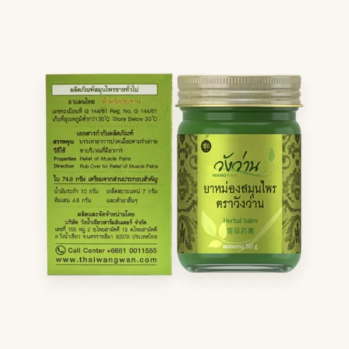 For acute muscle pain and sports recovery: Thai green balms like WangWan provide immediate cooling relief followed by deep warming penetration. The menthol creates an analgesic effect while camphor increases blood flow to damaged tissue.